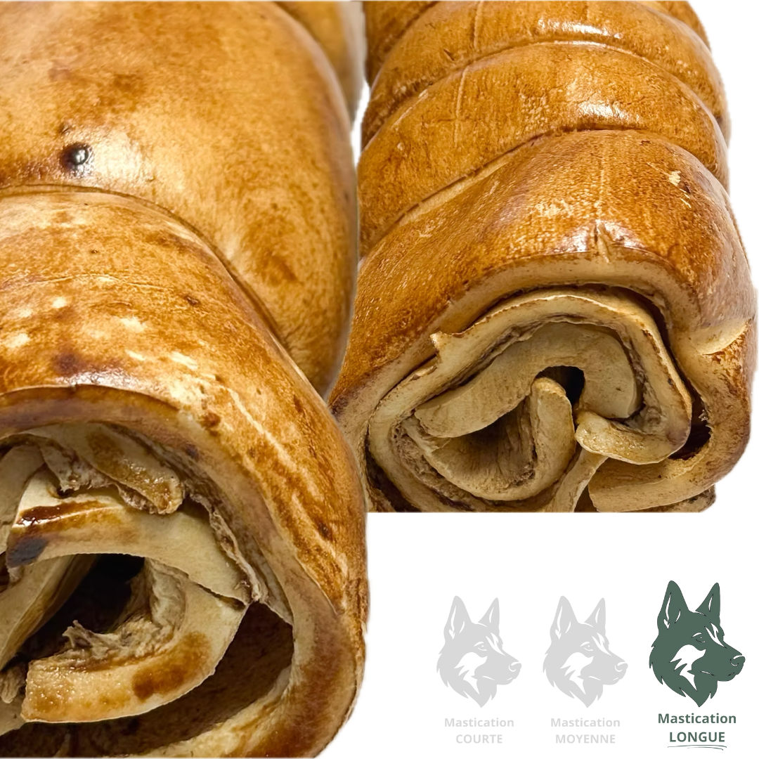 Le rouleau de joue de bœuf au beurre d’arachide KYON est spécialement conçu pour les chiens à mâcher intensément. Cette mastication durable associe la richesse naturelle de la joue de bœuf à une saveur de beurre d’arachide irrésistible, offrant à votre chien un plaisir prolongé tout en contribuant à la santé dentaire. Ce produit robuste est destiné aux chiens de taille moyenne à grande et n’est pas adapté aux petits chiens en raison de sa taille et de sa densité. Un choix expert pour stimuler l’activité masticatoire et satisfaire les besoins naturels de votre compagnon.