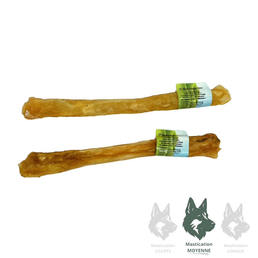Le poids moyen des bâtonnets de collagène de 12 pouces est supérieur à 55 g