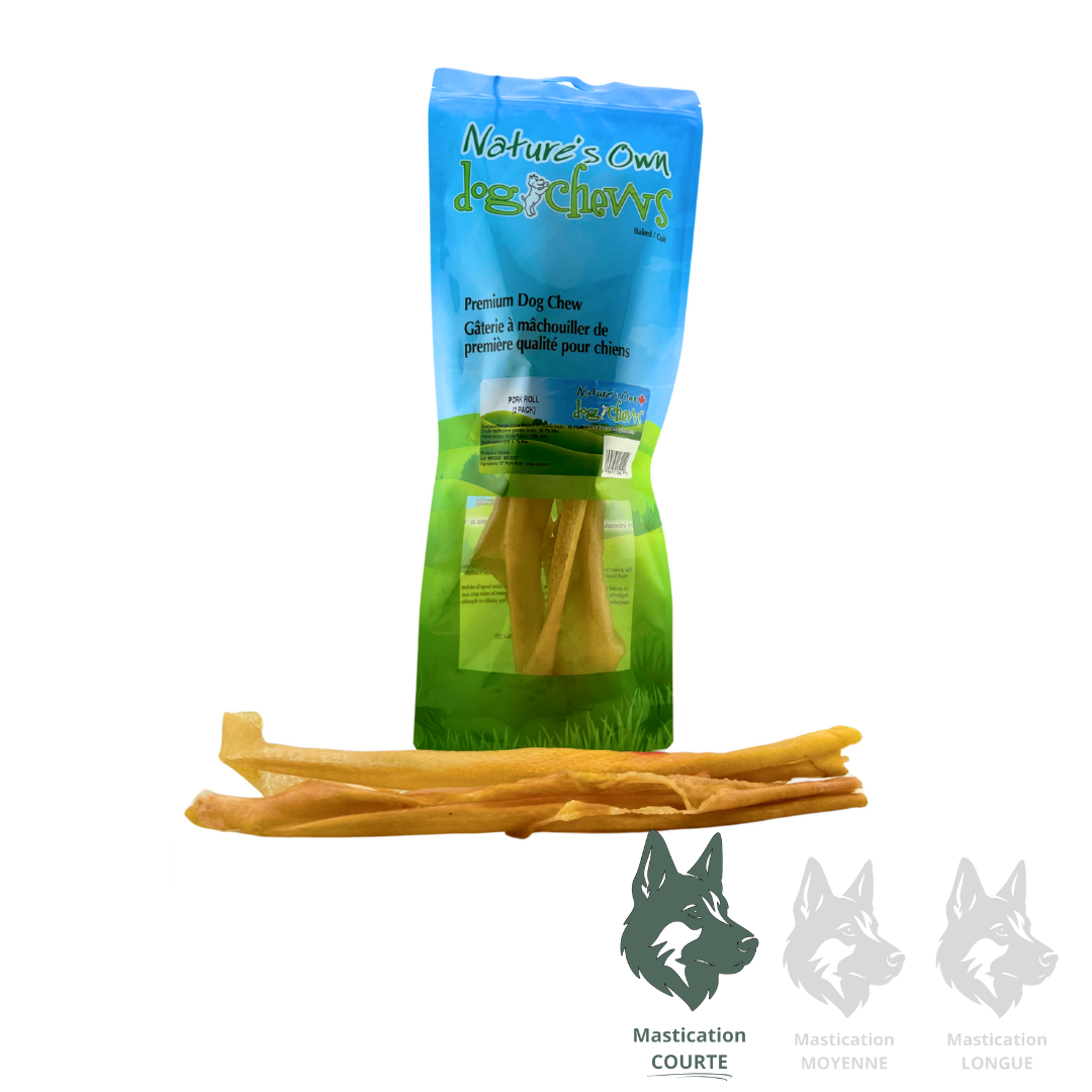 Les Rouleaux de Porc Nature’s Own sont une délicieuse option naturelle, riche en protéines et en matières grasses saines, parfaite pour les chiens qui aiment mâcher intensément.